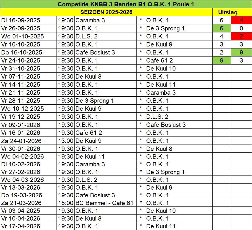 Uitslagen - Biljartvereniging O.B.K.